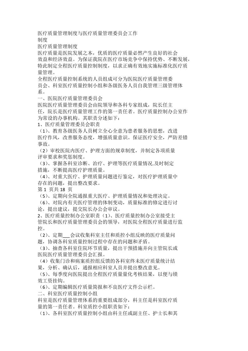 医疗质量管理制度与医疗质量管理委员会工作制度