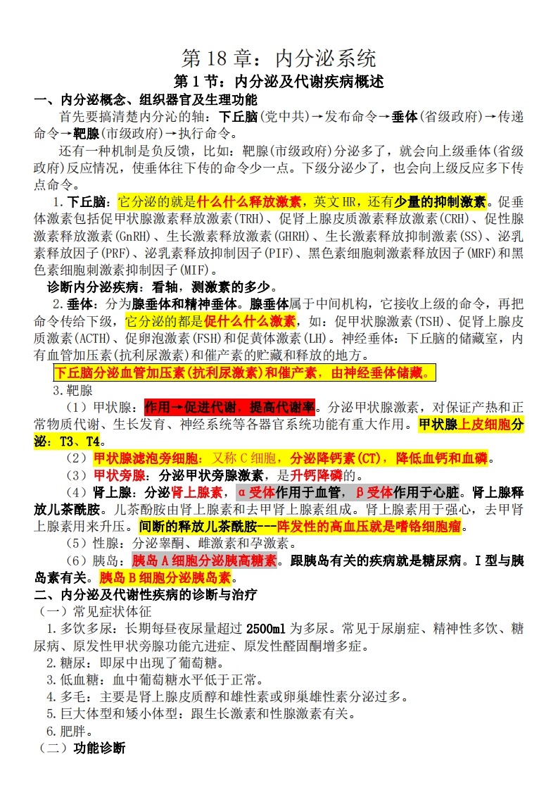 临床医学综合考试:内分泌系统