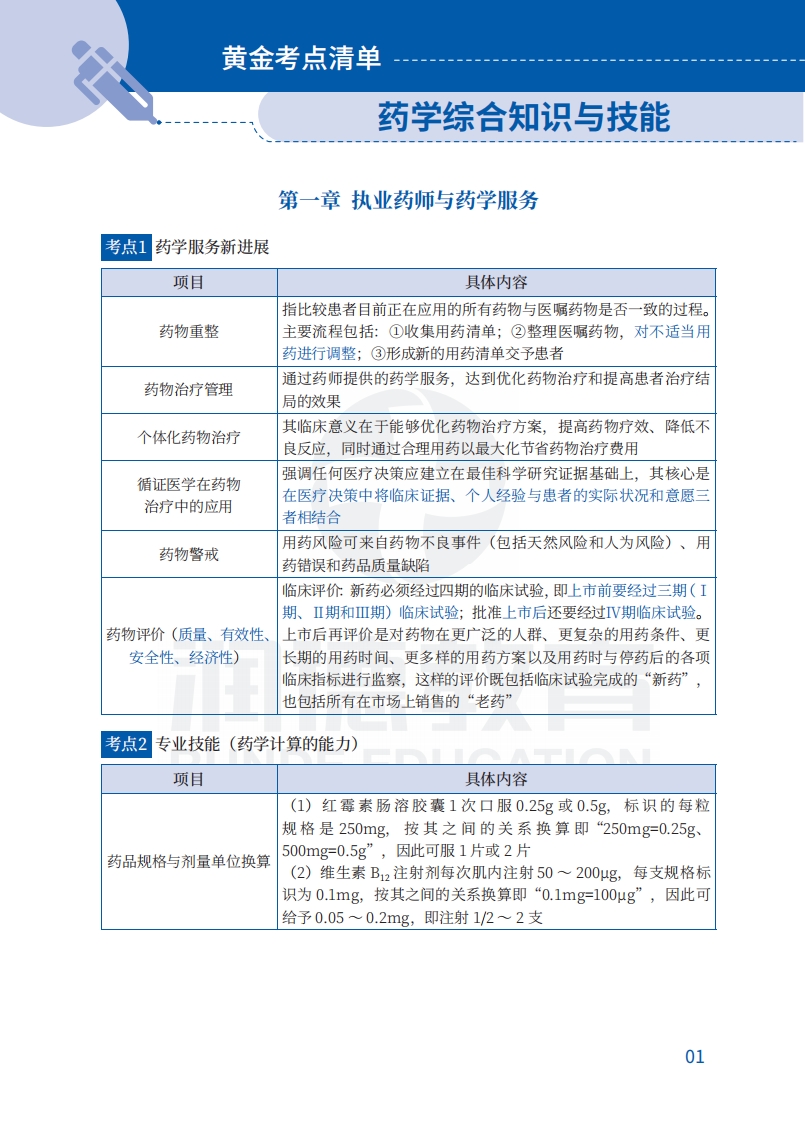 《药学综合》黄金考点