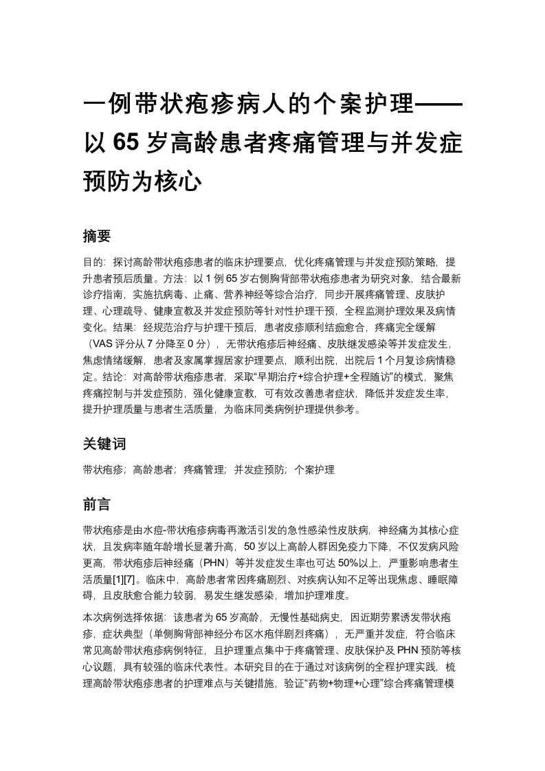 一例带状疱疹病人的个案护理