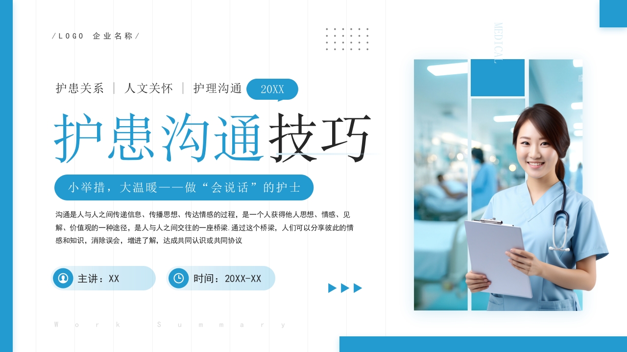 蓝色简约风护患沟通技巧培训