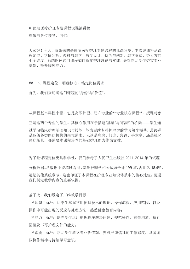 护理说课讲稿