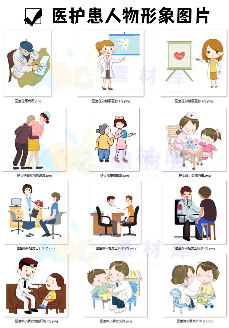 医学医疗科研绘图素材免扣医患人体器官仪器设备医生护士卡通PPT